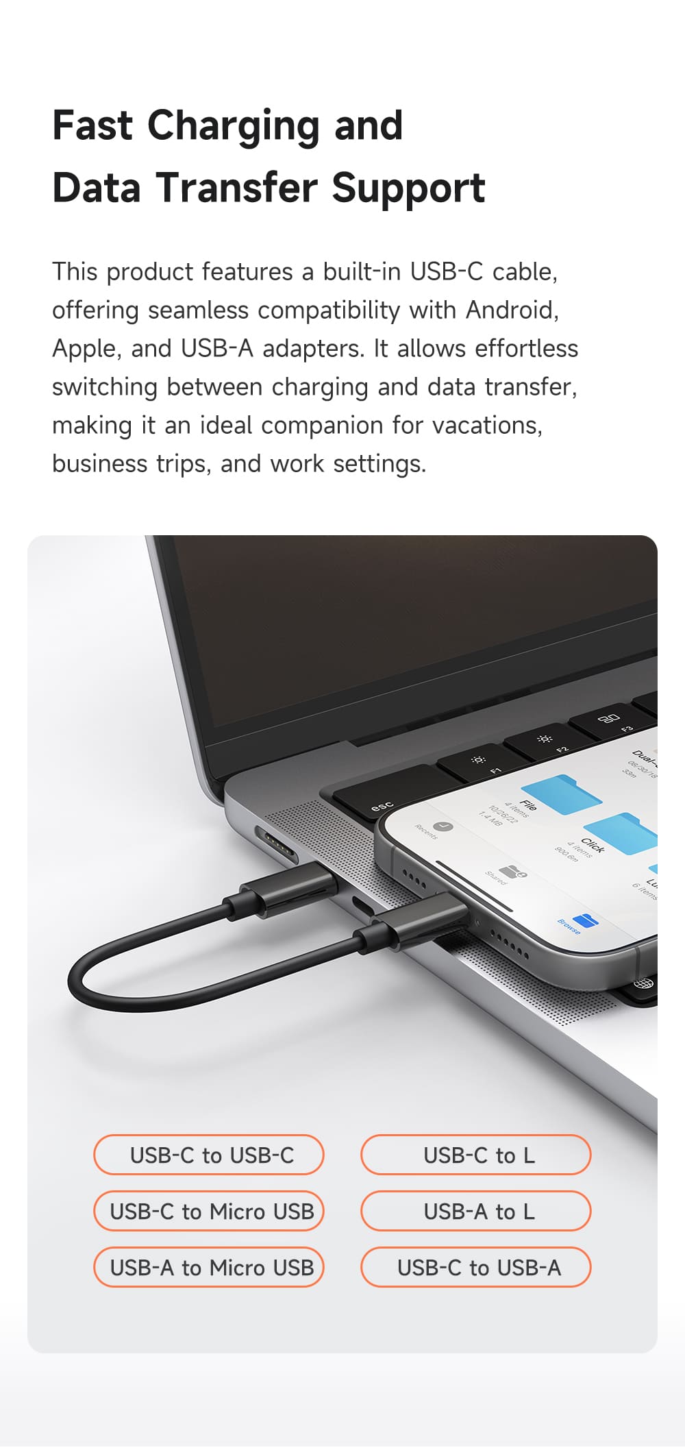 🔄 Sạc Nhanh & Truyền Dữ Liệu Linh Hoạt: Sợi cáp Type-C đi kèm cùng các đầu chuyển đổi cho phép bạn tạo ra nhiều tổ hợp cáp khác nhau để sạc nhanh và truyền dữ liệu cho hầu hết các thiết bị di động.
