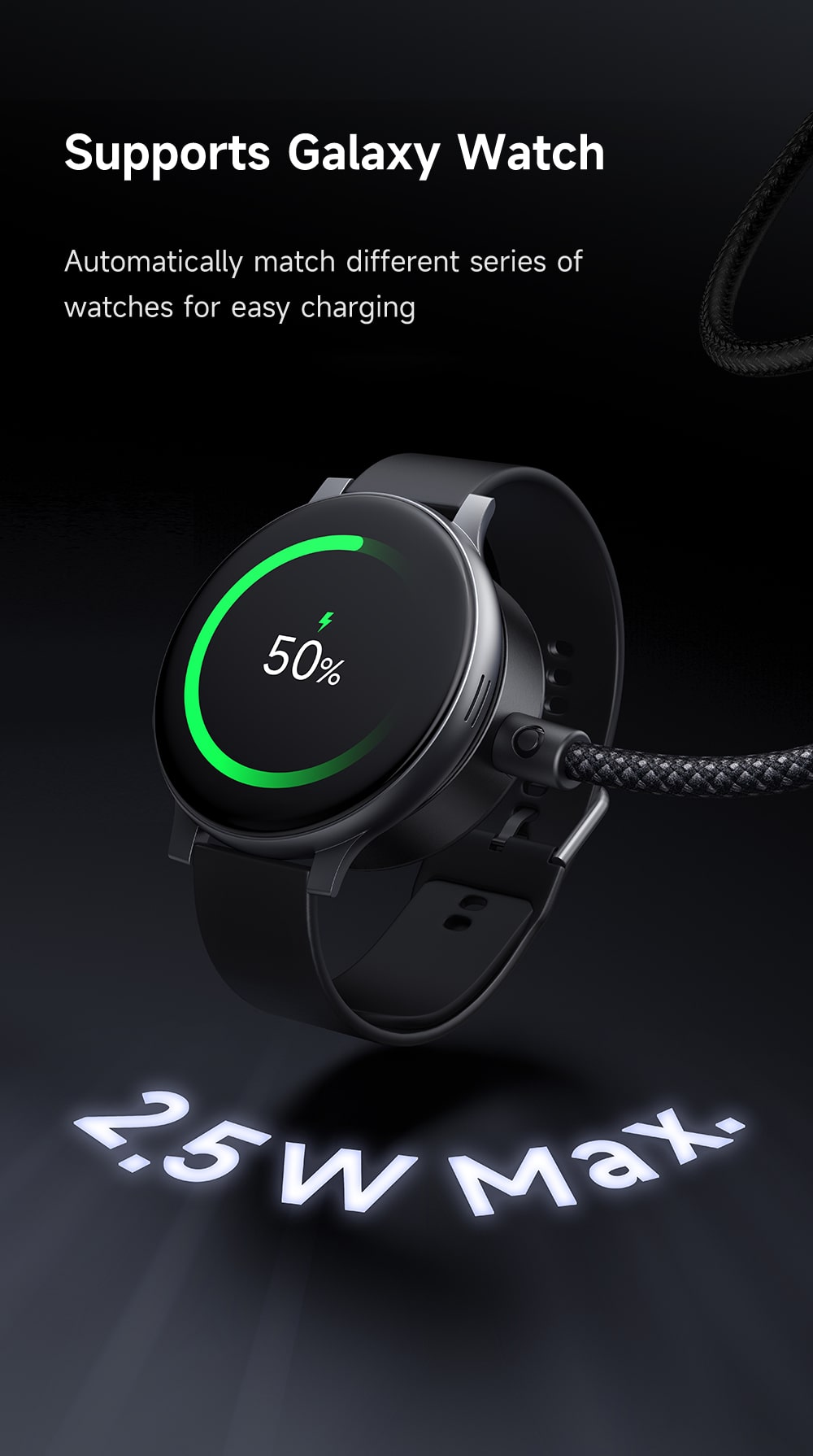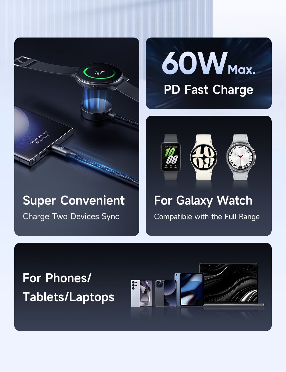 ○ Thiết kế 2 trong 1: Tích hợp đầu sạc Type-C và đế sạc không dây cho đồng hồ.