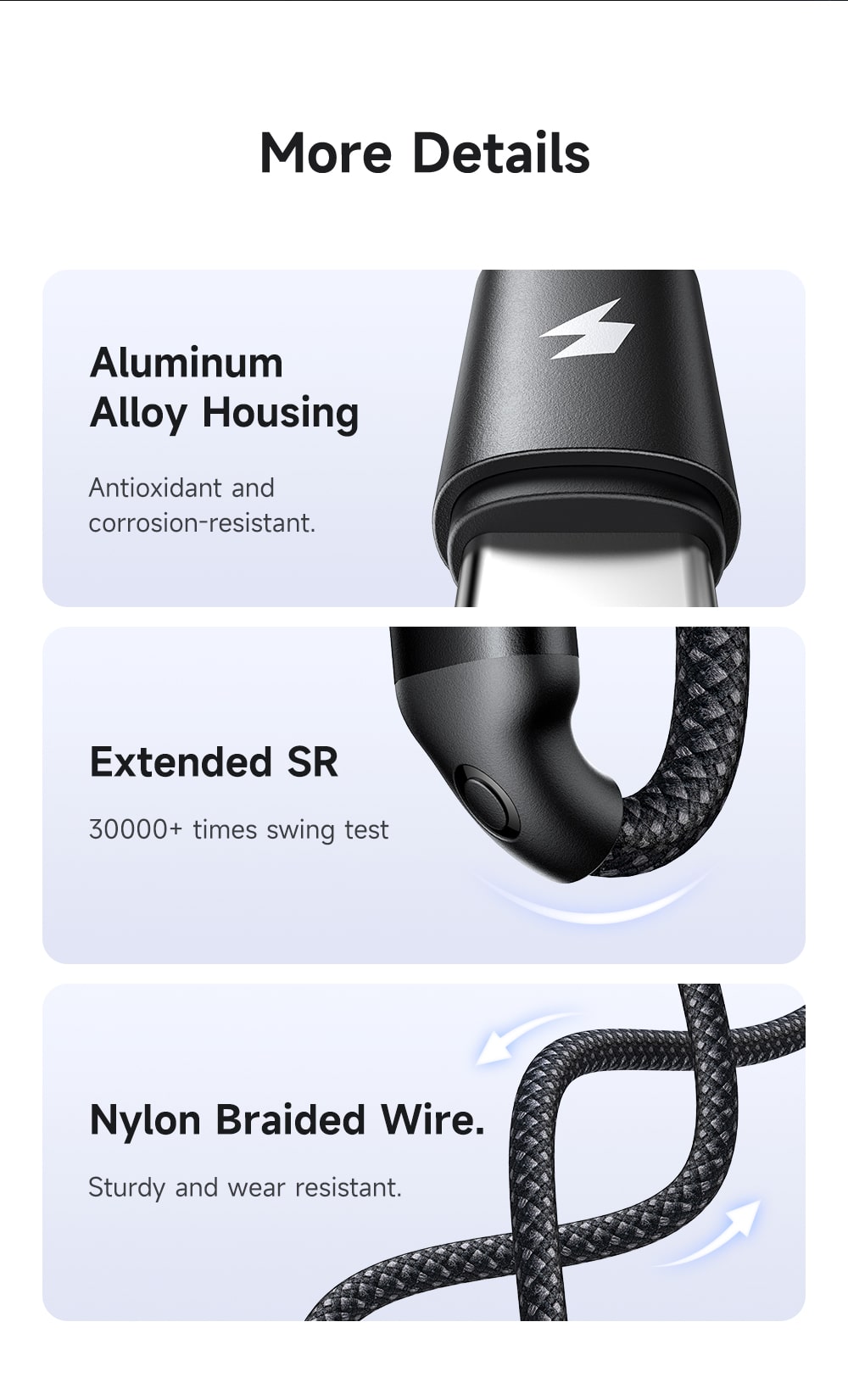 💪 Bền Bỉ & Cao Cấp: Dây cáp được bọc dù bện nylon mật độ cao, đầu cắm làm từ hợp kim nhôm chắc chắn. Thiết kế cao cấp, bền bỉ, sẵn sàng cho nhu cầu sử dụng cường độ cao.