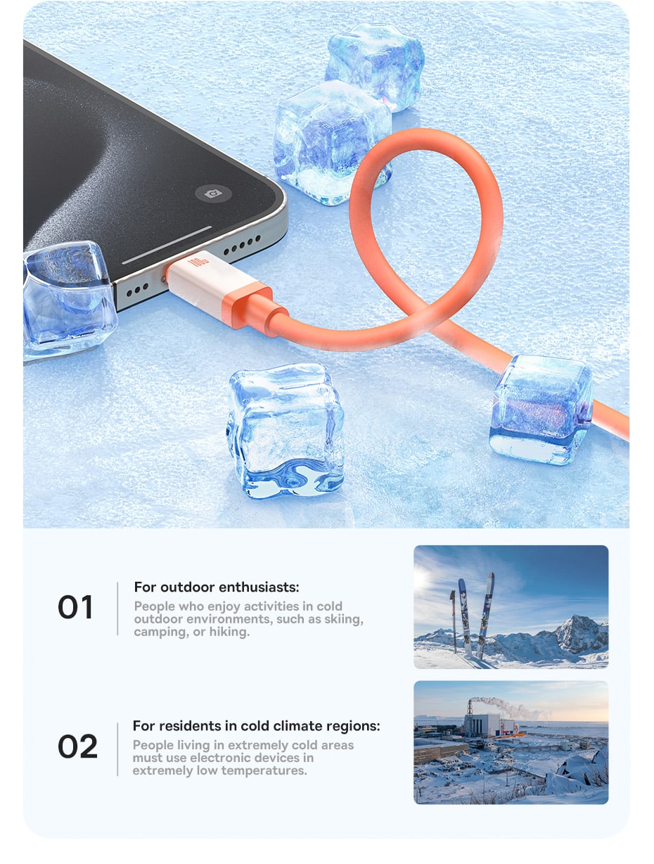 ❄️ DẺO DAI BẤT CHẤP GIÁ LẠNH -40°C: Điểm khác biệt độc nhất! Vỏ cáp được làm từ vật liệu TPE đặc biệt, giúp dây luôn giữ được sự mềm mại và dẻo dai ngay cả trong môi trường lạnh cóng đến -40°C. Nói không với tình trạng cáp bị cứng, giòn và nứt gãy như các loại cáp thông thường.