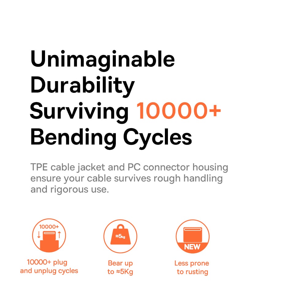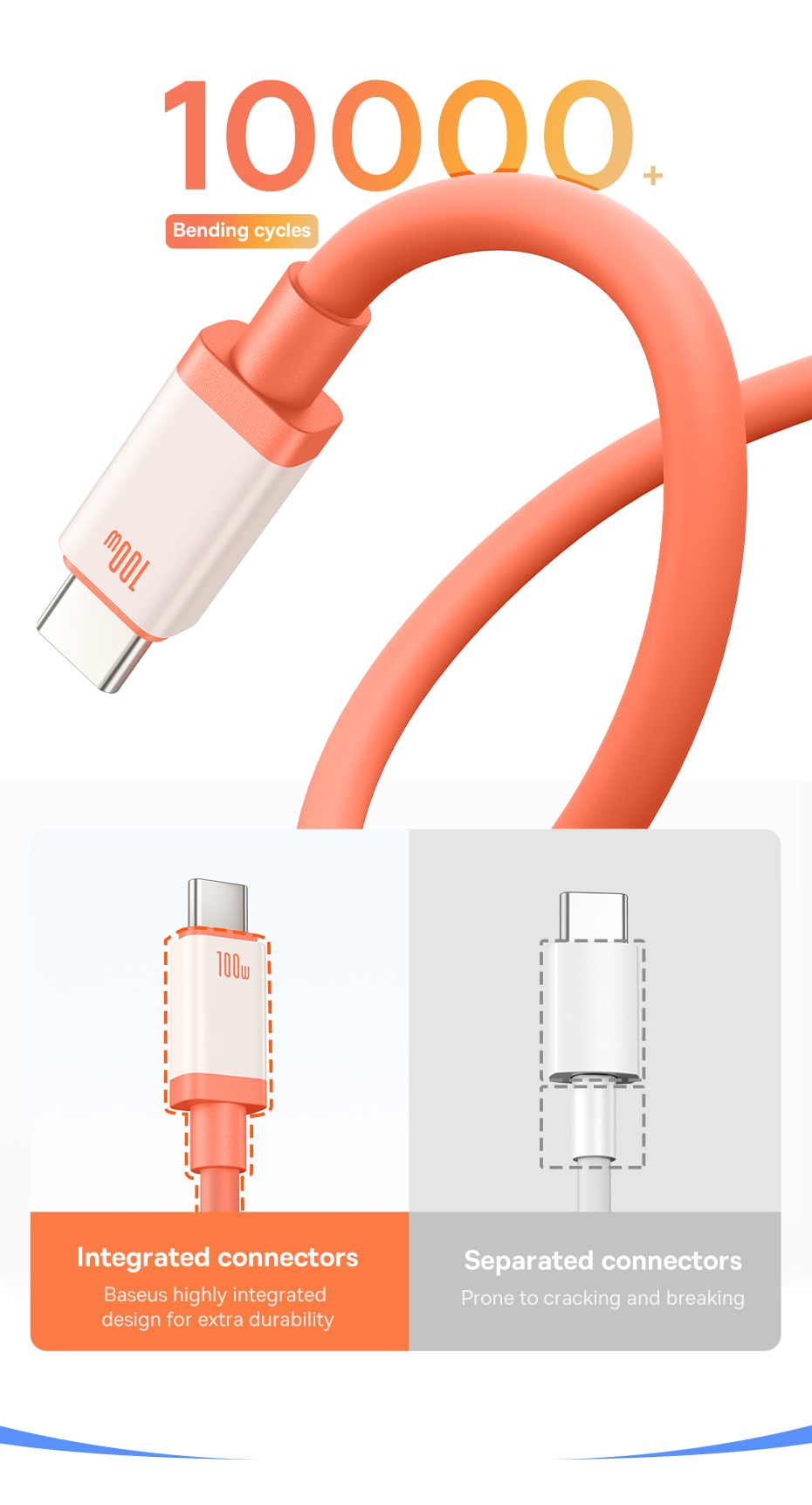 💪 SIÊU BỀN BỈ, VƯỢT QUA 10,000 LẦN UỐN CONG: Được thiết kế để sử dụng lâu dài, cáp Baseus đã vượt qua các bài kiểm tra uốn cong, gập bẻ hơn 10,000 lần mà không hư hại. Đầu cắm được gia cố chắc chắn, đảm bảo kết nối luôn ổn định.