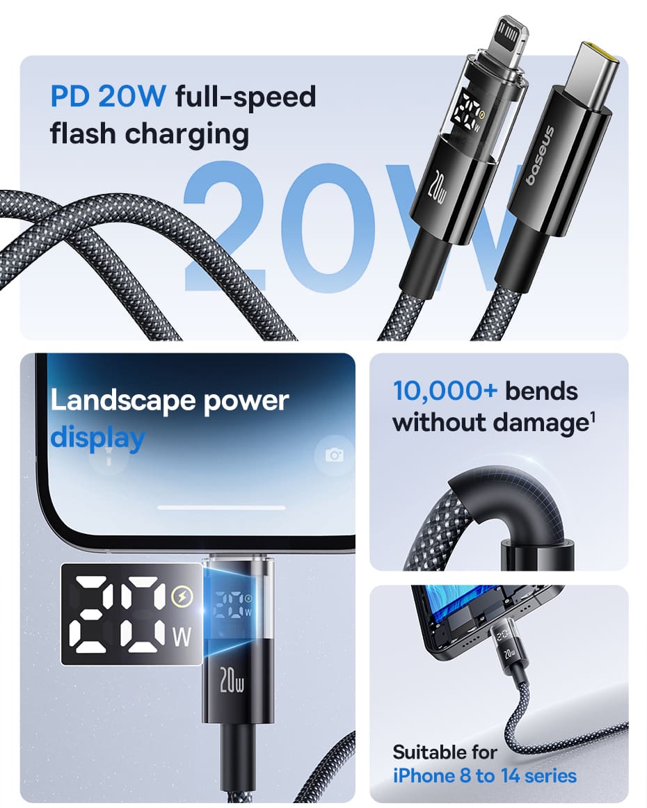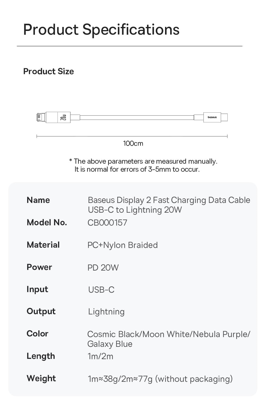 | Tên | Cáp Sạc Nhanh Baseus Display 2 Fast Charging Data Cable Type-C to iP 20W |