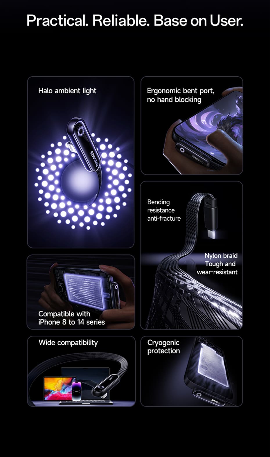 ✨ Đèn LED Halo "MVP" Đậm Chất Gaming: Đầu cắm được tích hợp vòng đèn LED Halo với hiệu ứng ánh sáng độc đáo, không chỉ giúp bạn dễ dàng xác định vị trí sạc trong bóng tối mà còn tạo nên một điểm nhấn phong cách, đồng bộ với dàn máy gaming của bạn.