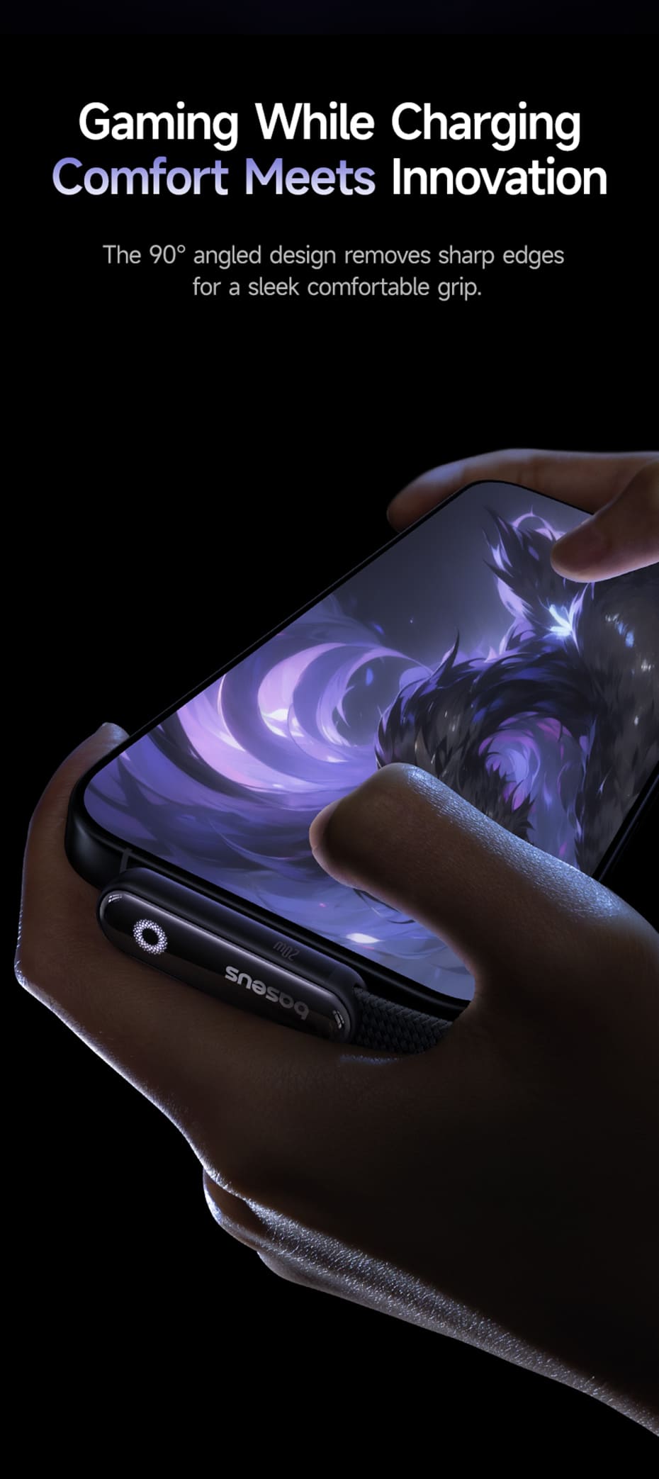 🎮 Thiết Kế Đầu Gập 90° Siêu Mỏng, Chơi Game Không Vướng Tay: Đây là tính năng nổi bật nhất! Đầu cáp được thiết kế gập góc vuông 90 độ (chữ L) và siêu mỏng, giúp dây sạc nằm gọn dọc theo cạnh máy. Hoàn toàn không gây cấn hay vướng víu, cho cảm giác cầm nắm thoải mái nhất khi bạn chơi game hoặc xem phim.