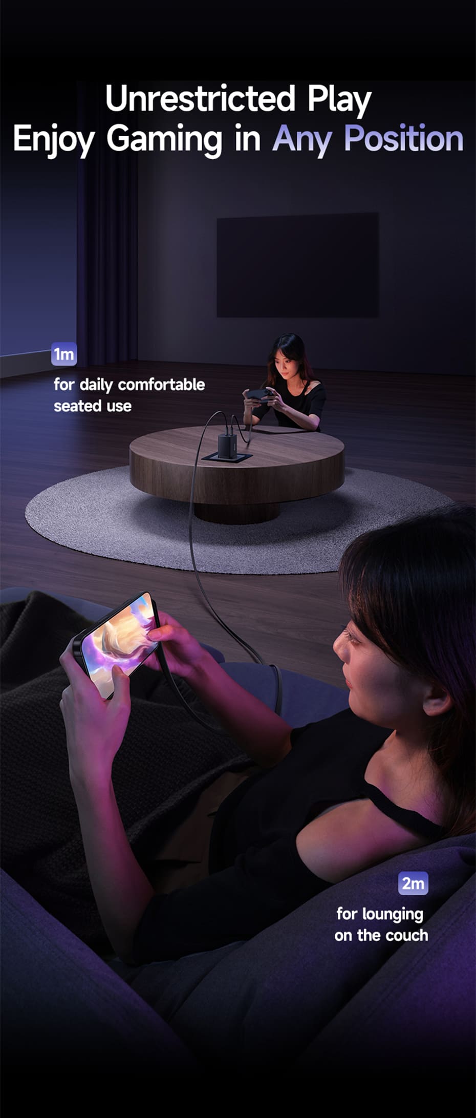 💪 Bền Bỉ Vượt Trội: Dây cáp bọc dù bện nylon mật độ cao và các khớp nối được gia cố chắc chắn, giúp chống rối, chống mài mòn và đảm bảo tuổi thọ sử dụng lâu dài, ngay cả với các game thủ.