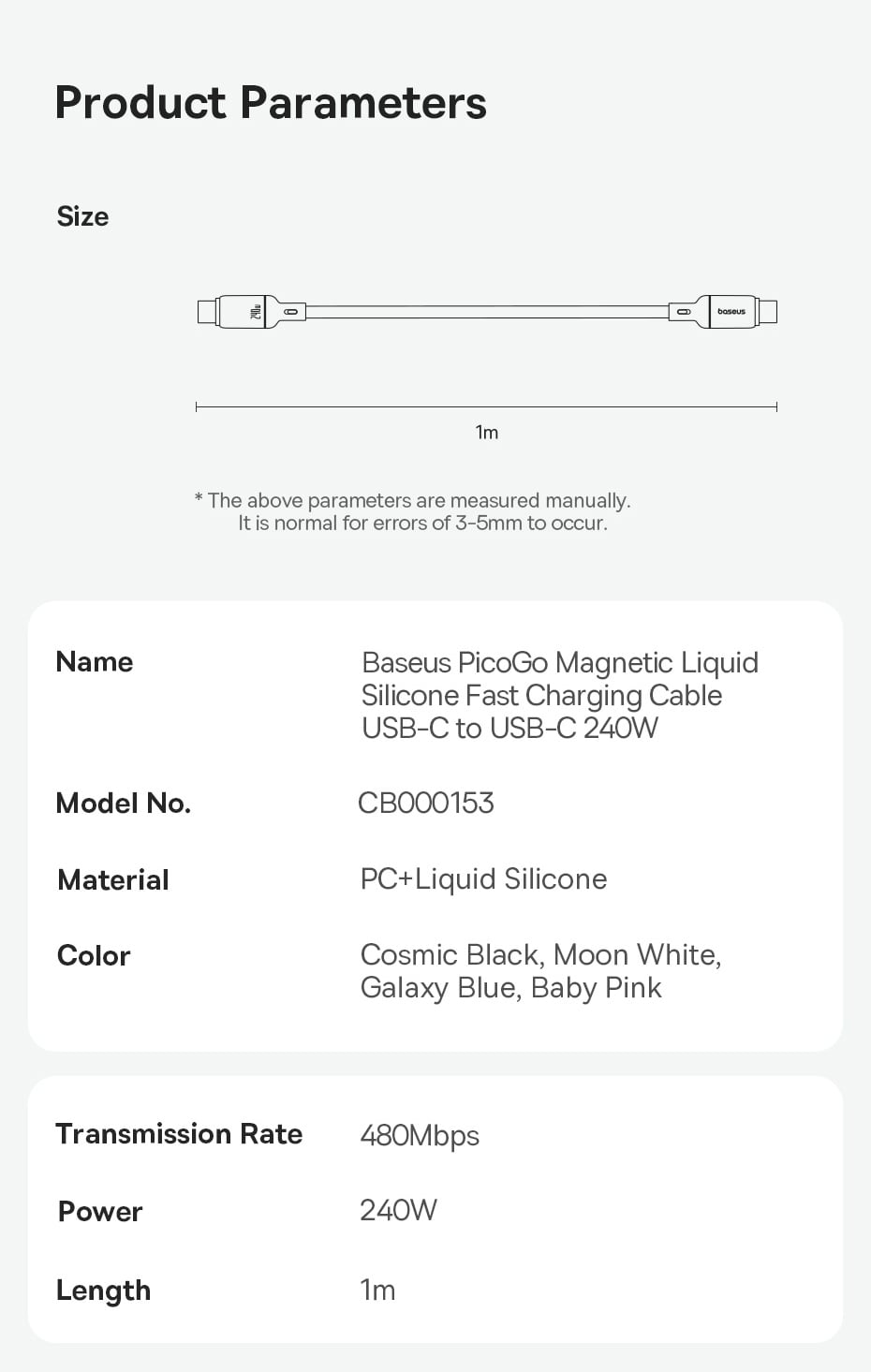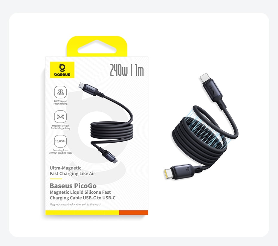 | Tên | Cáp Sạc Nhanh Baseus PicoGo Magnetic Liquid Silicone Fast Charging Cable Type-C to Type-C 240W |