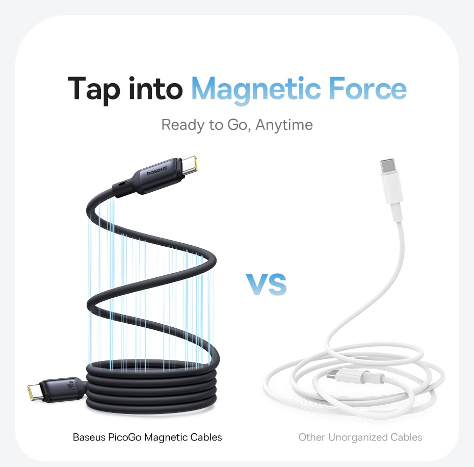 Trải nghiệm sợi cáp sạc đỉnh cao nhất từ Baseus! PicoGo là sự kết hợp hoàn hảo giữa công suất sạc 240W mạnh mẽ nhất, cơ chế từ tính tự cuốn gọn thông minh và chất liệu silicon lỏng mềm mại cao cấp. Đây là giải pháp sạc toàn diện, tiện lợi và sang trọng cho mọi thiết bị của bạn.