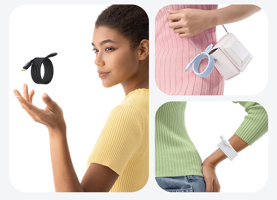 ○ Thiết kế từ tính dọc thân cáp, giúp tự động cuộn gọn chống rối.