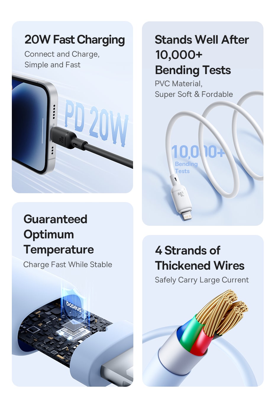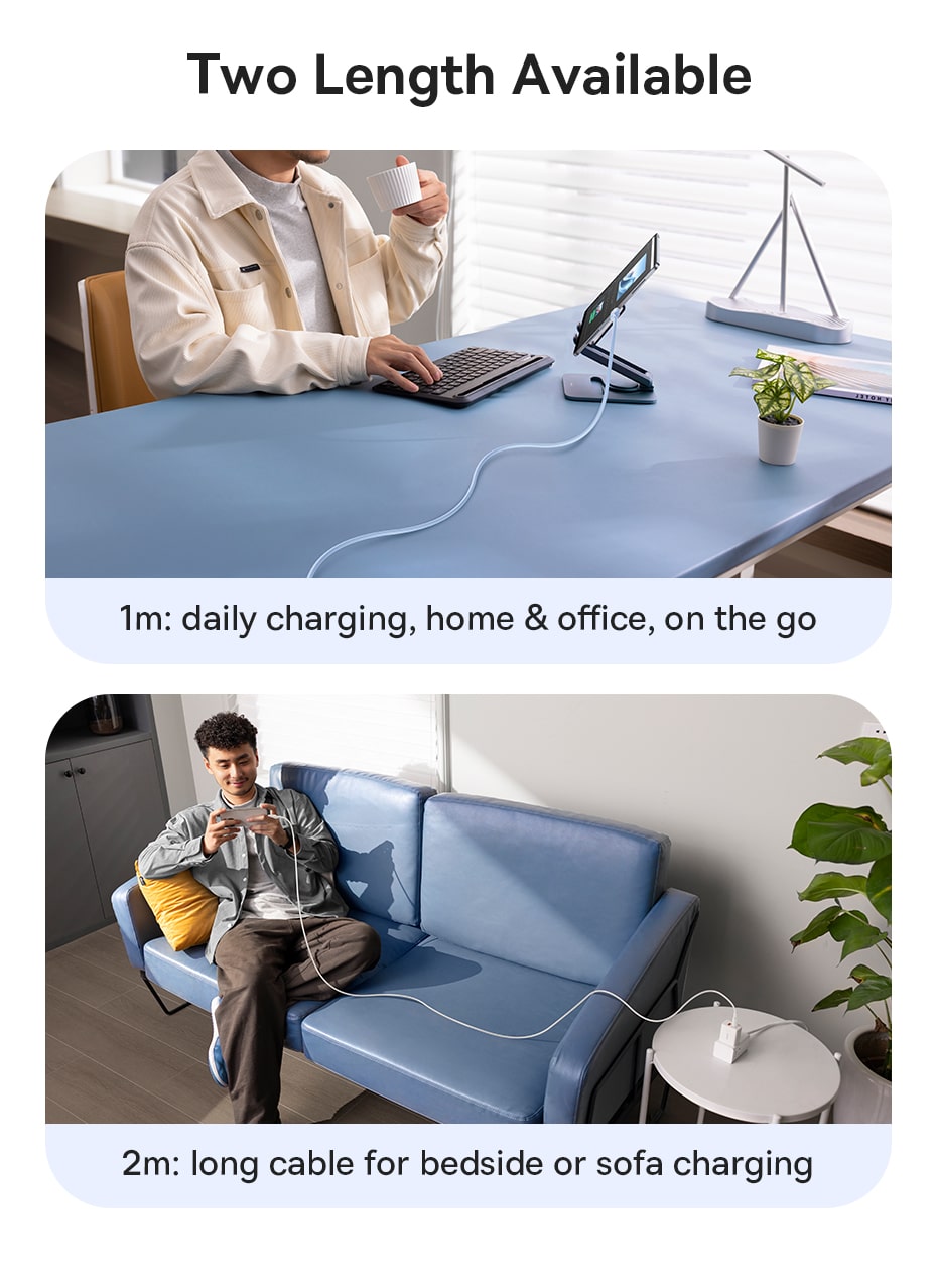 ○ Bảng Màu Thời Trang: Với bảng màu pastel trẻ trung, hiện đại, sợi cáp không chỉ là một phụ kiện công nghệ mà còn là một điểm nhấn thời trang, giúp bạn thể hiện cá tính và phối màu hoàn hảo với chiếc điện thoại của mình.