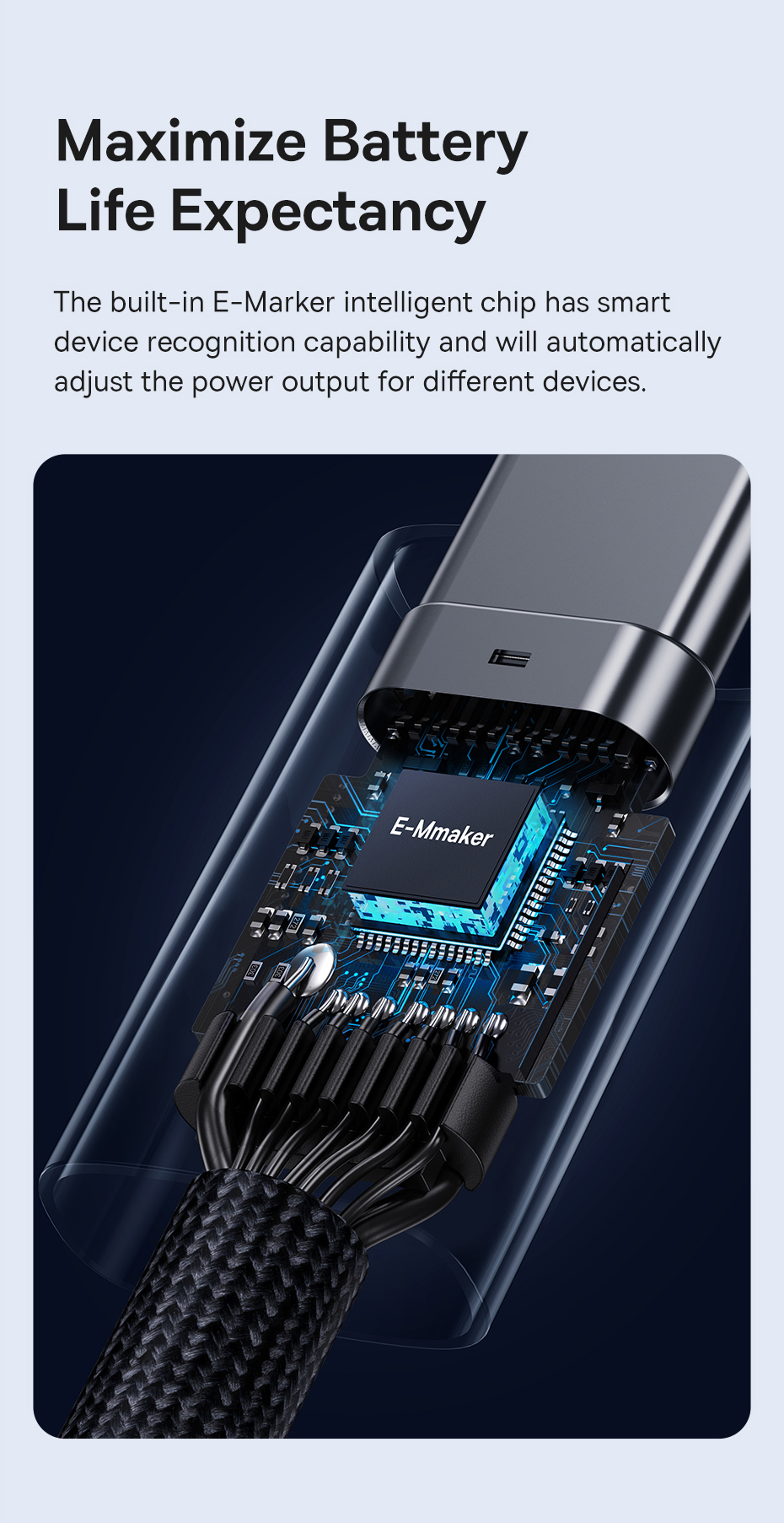 ○ Chip thông minh: E-Marker tích hợp để quản lý và bảo vệ dòng điện công suất cao.