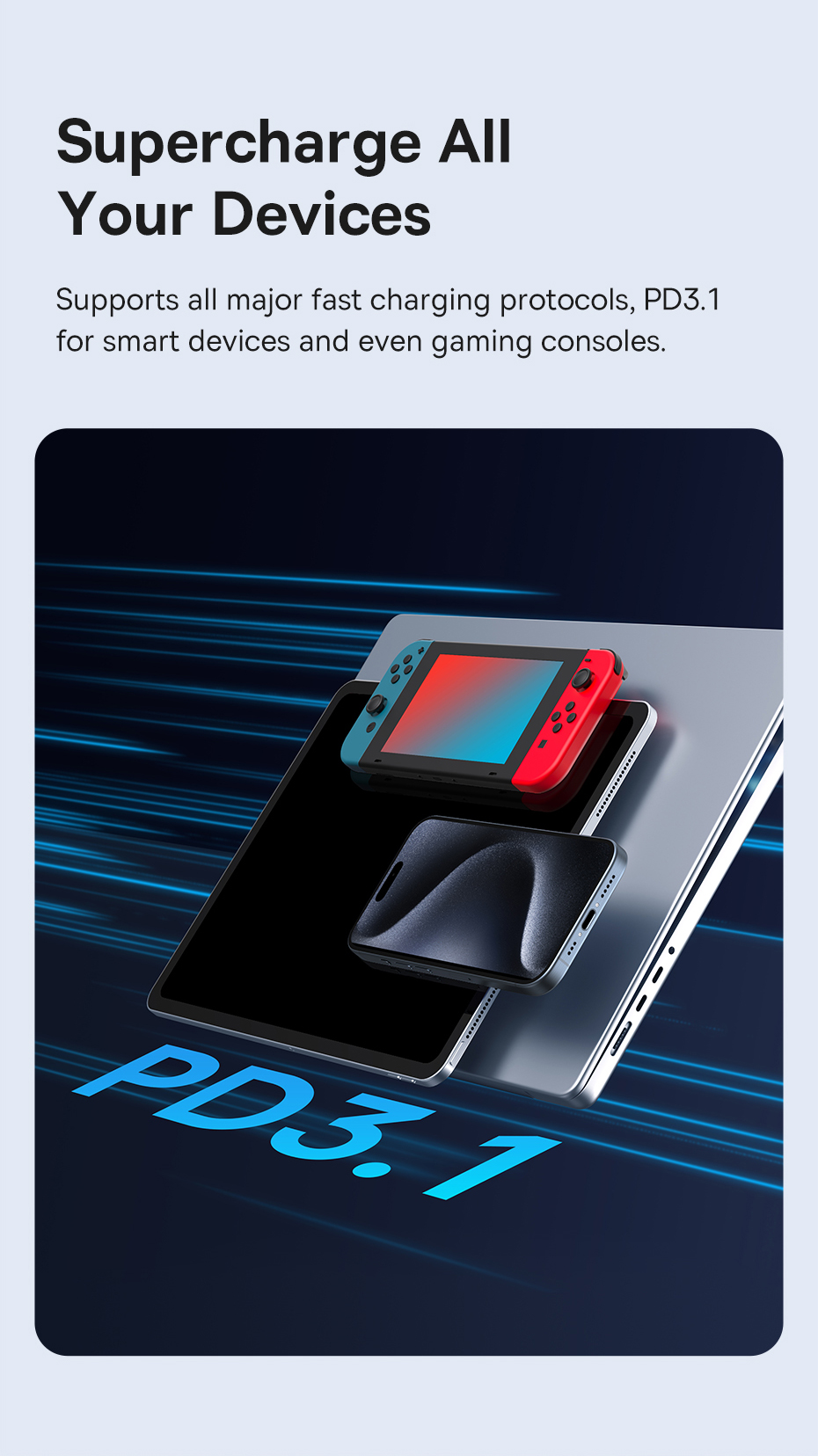 ○ Công suất sạc: Tối đa 240W, hỗ trợ chuẩn PD 3.1 mới nhất.