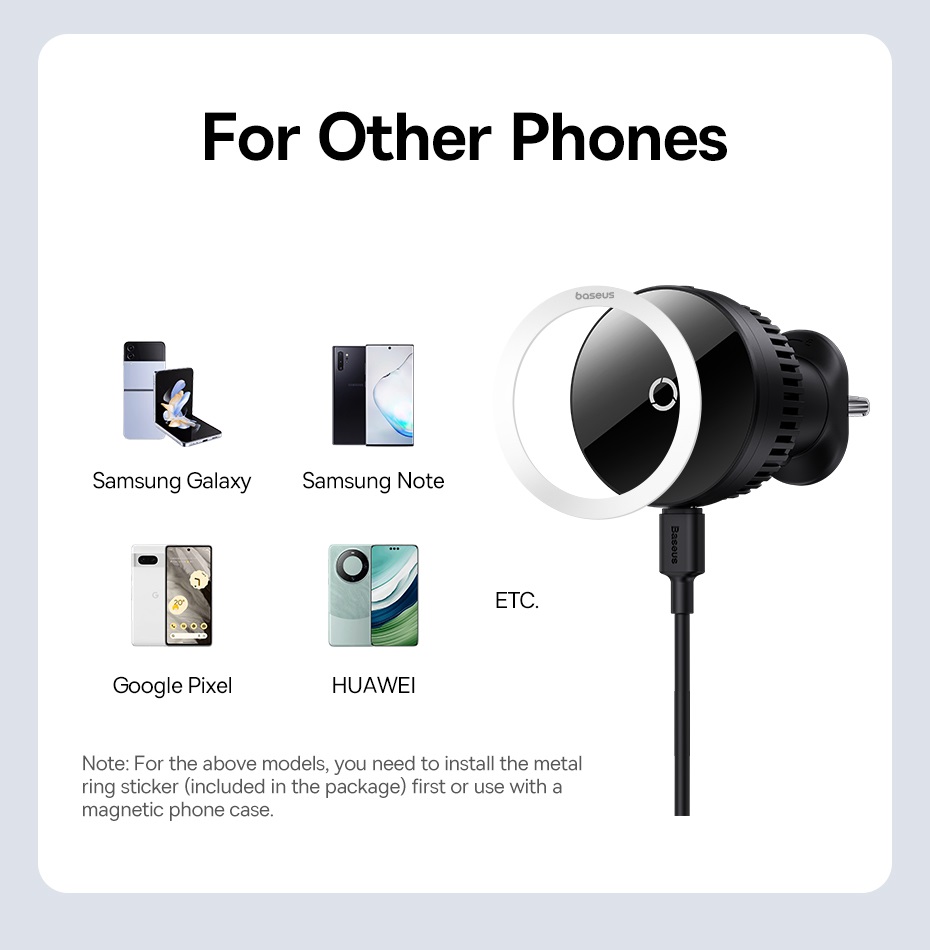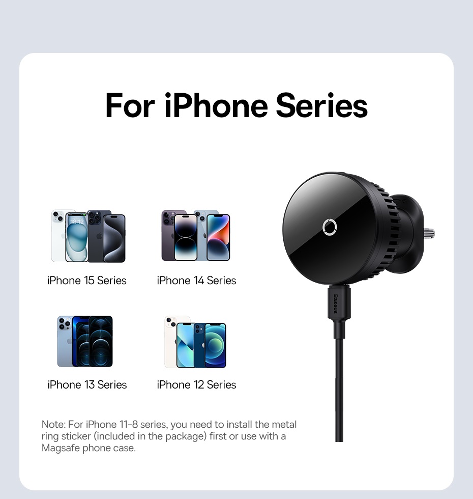 ○ Tương thích: Các dòng điện thoại có hỗ trợ sạc không dây từ tính (hoặc có sử dụng ốp lưng/vòng từ hỗ trợ).