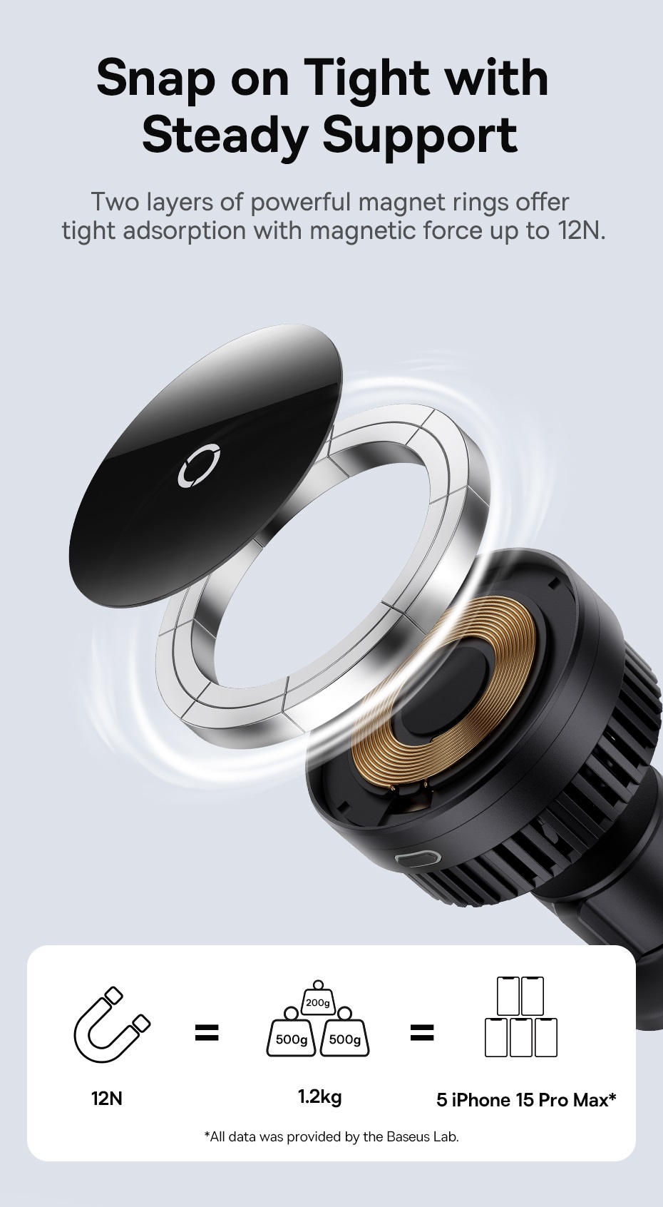 🧲 LỰC HÚT NAM CHÂM 1.2KG - BẤT CHẤP MỌI RUNG LẮC: Với lực hút từ tính lên đến 12N (tương đương sức giữ 1.2kg), điện thoại của bạn sẽ được giữ chặt một cách an toàn tuyệt đối. Tự tin di chuyển qua những đoạn đường gồ ghề nhất mà không lo điện thoại bị rơi.