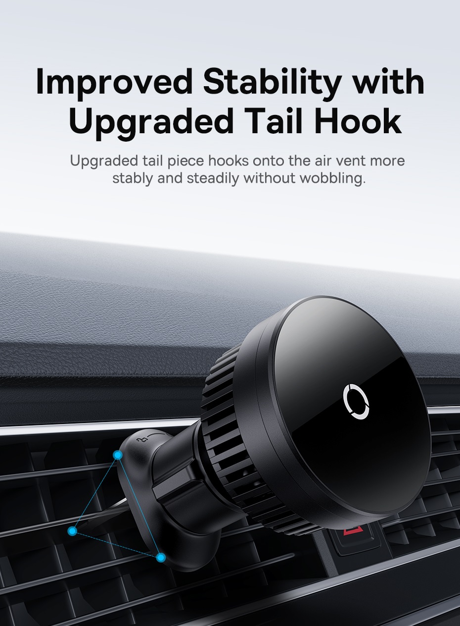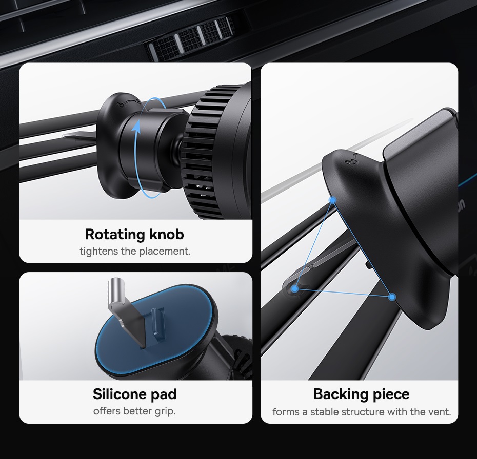 ○ Ngàm kẹp: Dạng móc câu cải tiến, bám chắc vào cửa gió ô tô.