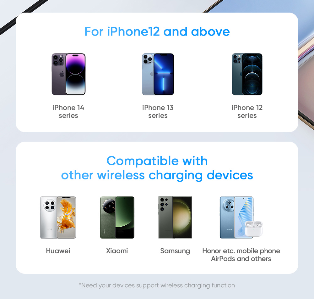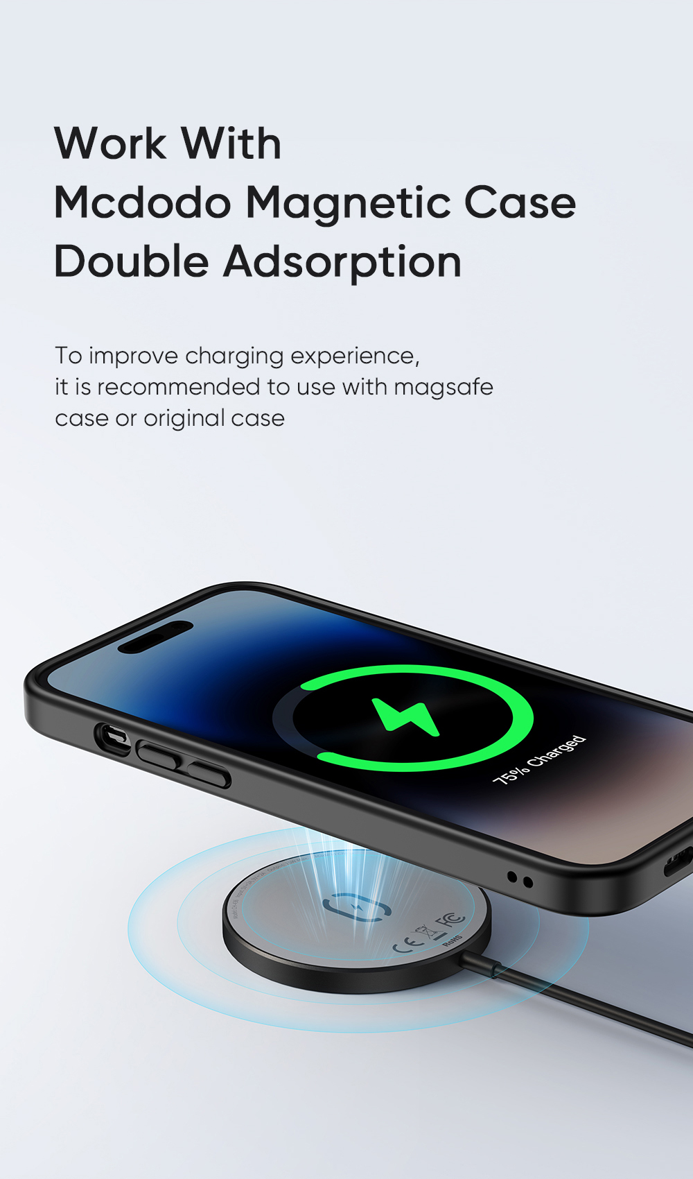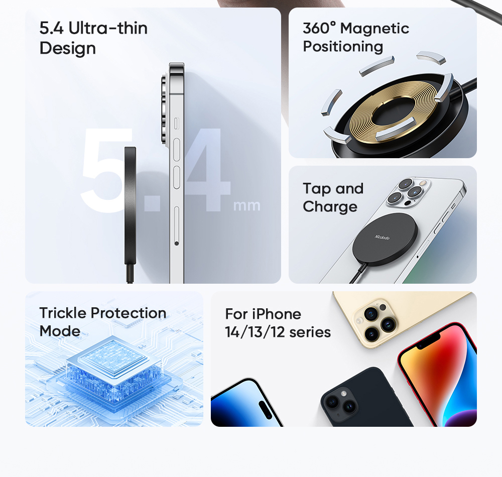 ○ Thiết kế hít nam châm tiện lợi, tương thích sạc không dây từ tính.