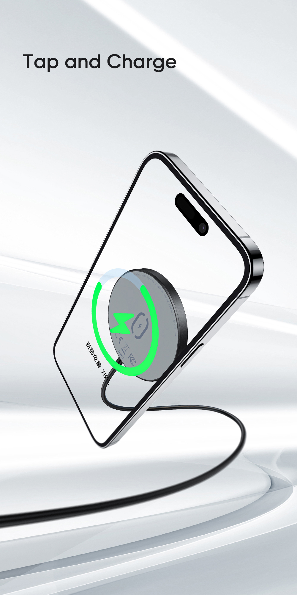 🧲 Hít Nam Châm Mạnh Mẽ, Chính Xác: Tích hợp nam châm 3500Gs mạnh mẽ, chỉ cần đưa đế sạc lại gần mặt lưng điện thoại, lực hút từ tính sẽ tự động canh chỉnh và hít chặt vào đúng vị trí, đảm bảo sạc không dây hiệu quả và ổn định.