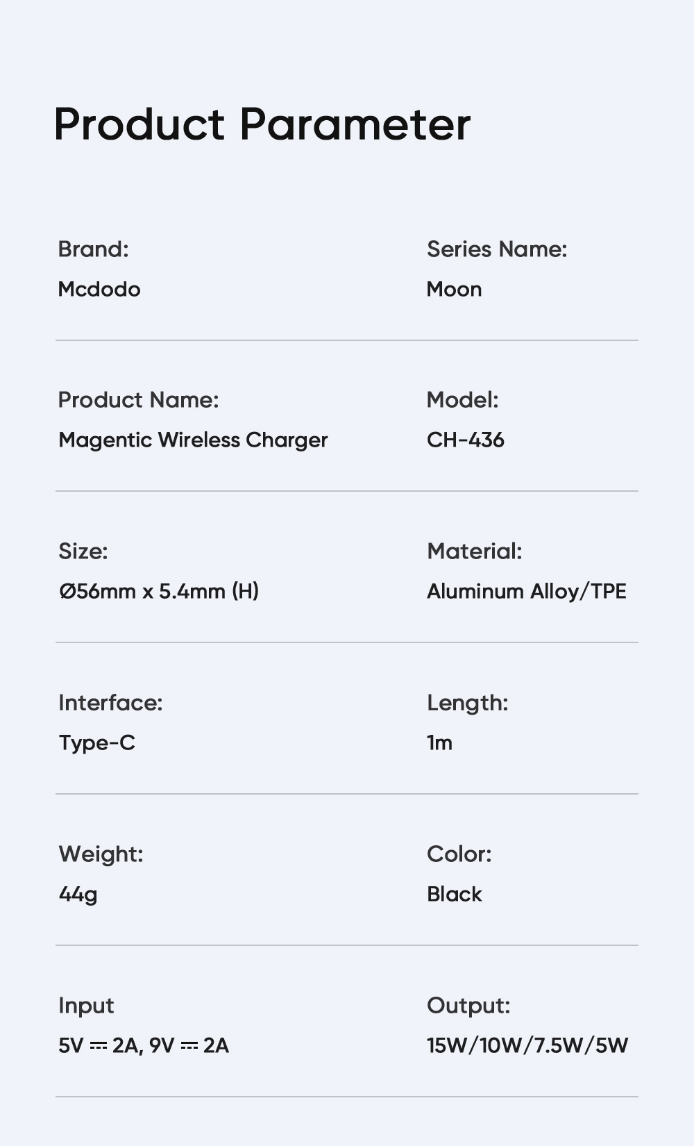 | Tên | Đế Sạc Không Dây Mcdodo 15W Moon Series Magnetic Fast Wireless Charger |