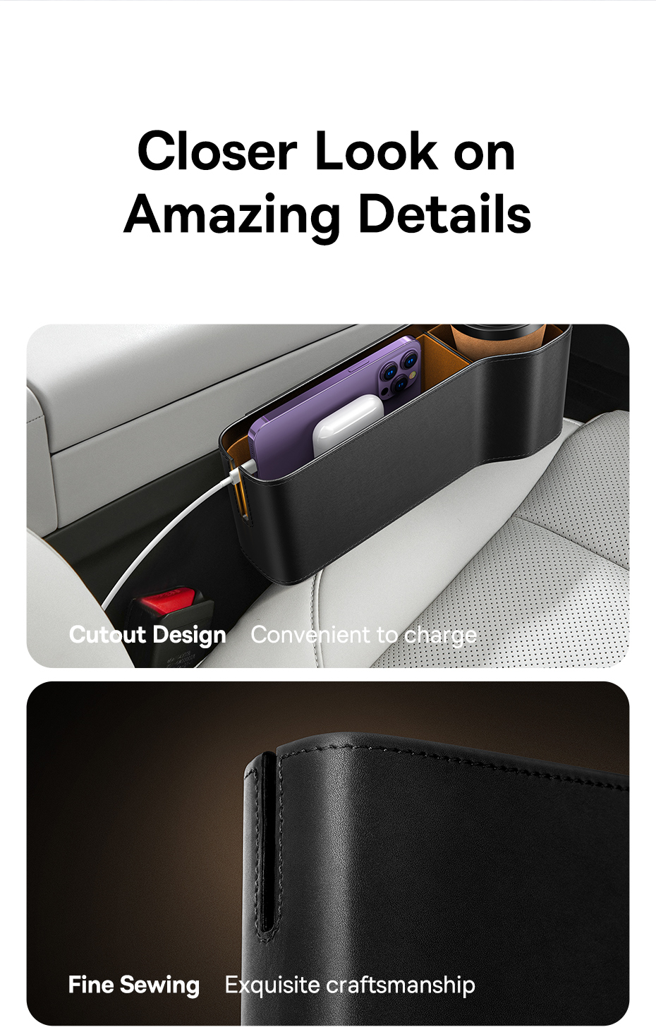 Lắp Đặt Dễ Dàng: Chỉ cần đặt vào khe hở bên cạnh ghế ngồi.