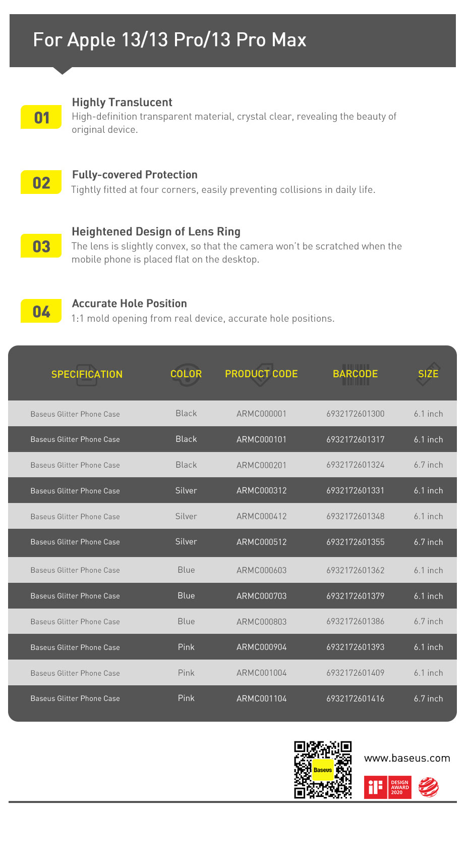 Baseus Glitter Case là lựa chọn lý tưởng cho người dùng iP13 series mong muốn bảo vệ thiết bị với một chiếc ốp vừa đẹp mắt vừa bền bỉ. Thiết kế trong suốt, sang trọng cùng khả năng bảo vệ tốt giúp sản phẩm đáp ứng đầy đủ nhu cầu sử dụng hàng ngày mà vẫn giữ được nét nguyên bản của chiếc điện thoại cao cấp.