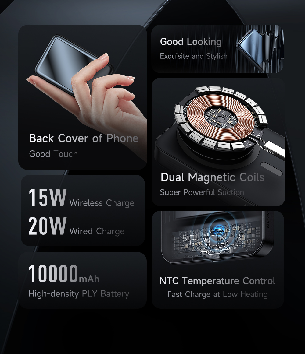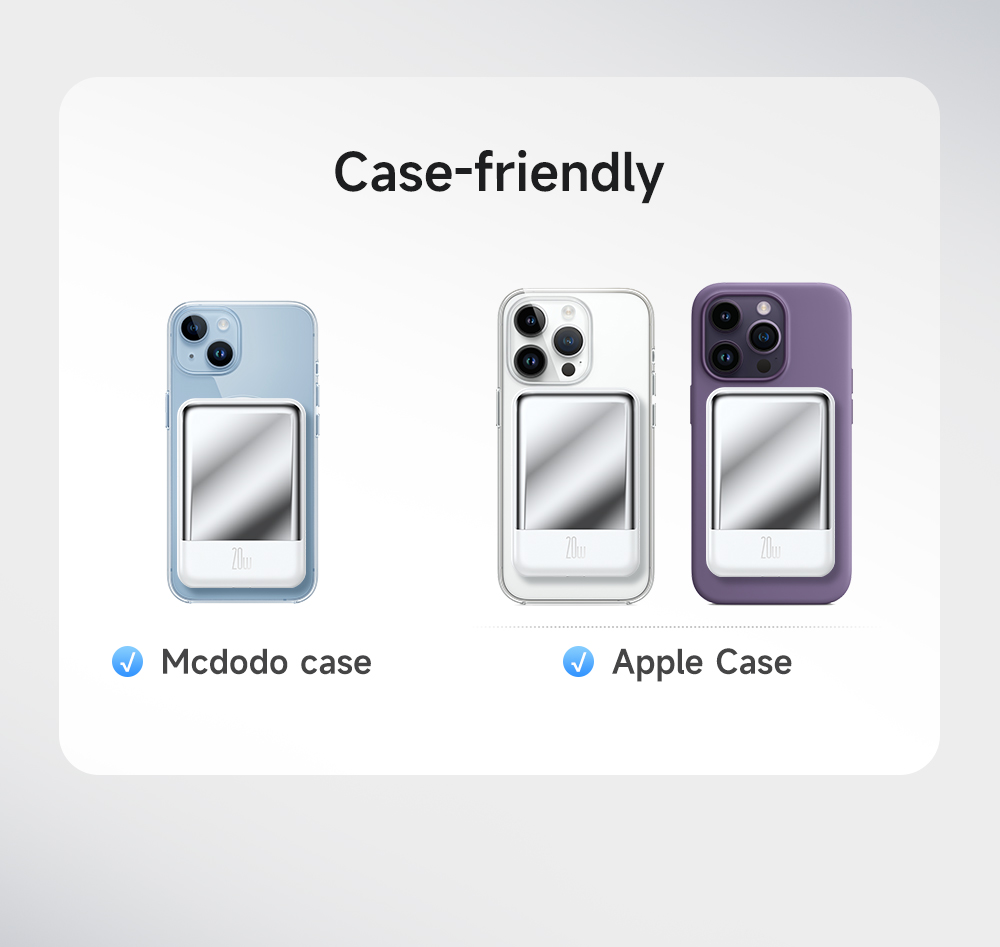 ○ Sạc không dây từ tính: Tự động hít chặt vào mặt lưng điện thoại và bắt đầu sạc, không cần căn chỉnh.