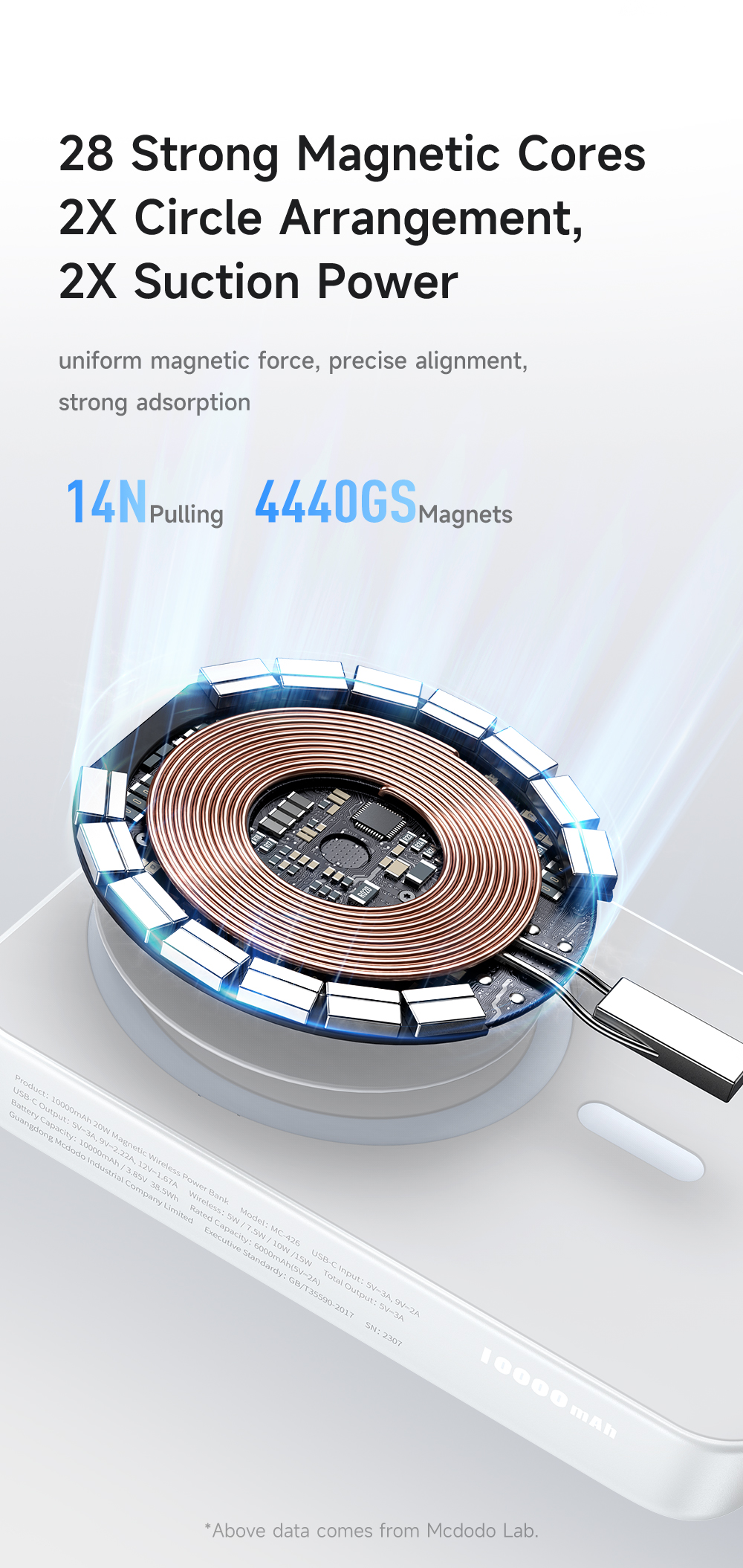🧲 LỰC HÚT NAM CHÂM GẤP ĐÔI - CHẮC CHẮN KHÔNG RƠI RỚT: Được trang bị tới 28 lõi nam châm cực mạnh sắp xếp theo 2 vòng tròn, pin hít chặt vào mặt lưng điện thoại một cách ổn định, đảm bảo không bị rơi hay lệch vị trí sạc ngay cả khi di chuyển.