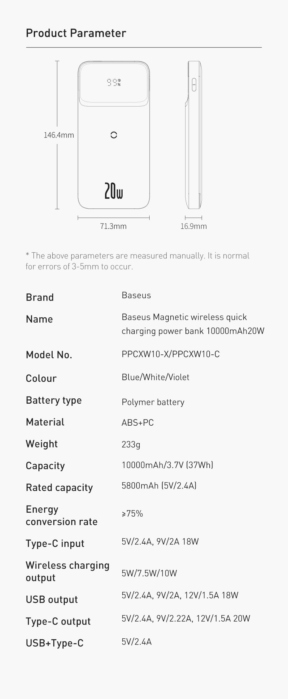 | Tên | Baseus Magnetic Wireless Fast charging Power bank |