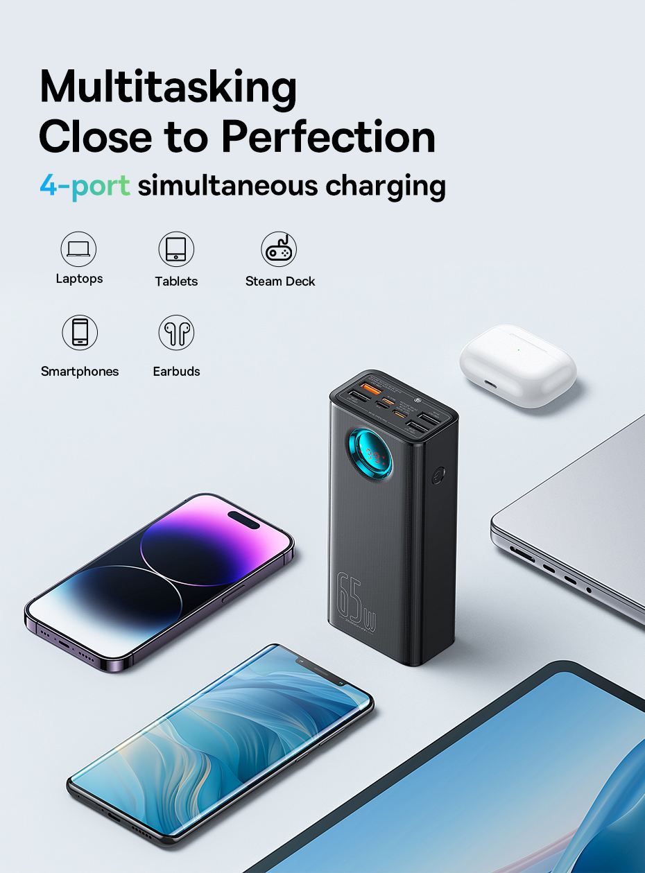 💻 SẠC NHANH 65W CHO CẢ LAPTOP: Đây chính là sức mạnh bạn cần! Công suất 65W qua cổng Type-C đủ sức sạc cho hầu hết các dòng laptop hỗ trợ sạc PD, cũng như sạc siêu nhanh cho điện thoại, máy tính bảng, máy chơi game cầm tay (Steam Deck...).
