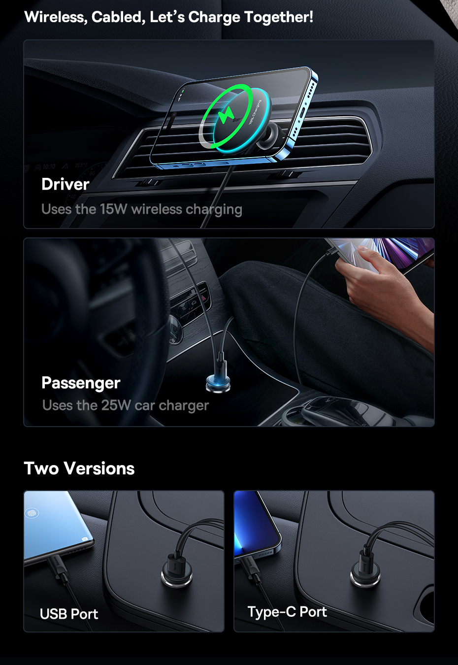 ⚡ BỘ ĐÔI HOÀN HẢO - TỔNG CÔNG SUẤT 40W: Không chỉ là giá đỡ, sản phẩm đi kèm một tẩu sạc mạnh mẽ. Bạn có thể vừa sạc không dây cho điện thoại trên giá đỡ, vừa dùng cổng sạc rời trên tẩu để cấp nguồn cho một thiết bị khác.