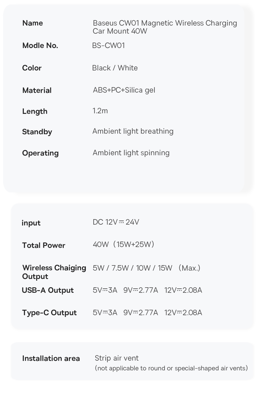 | Tên | Baseus CW01 Magnetic Wireless Charging Car Mount 40W |