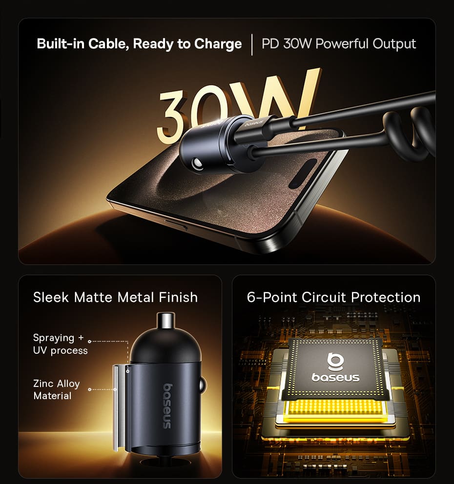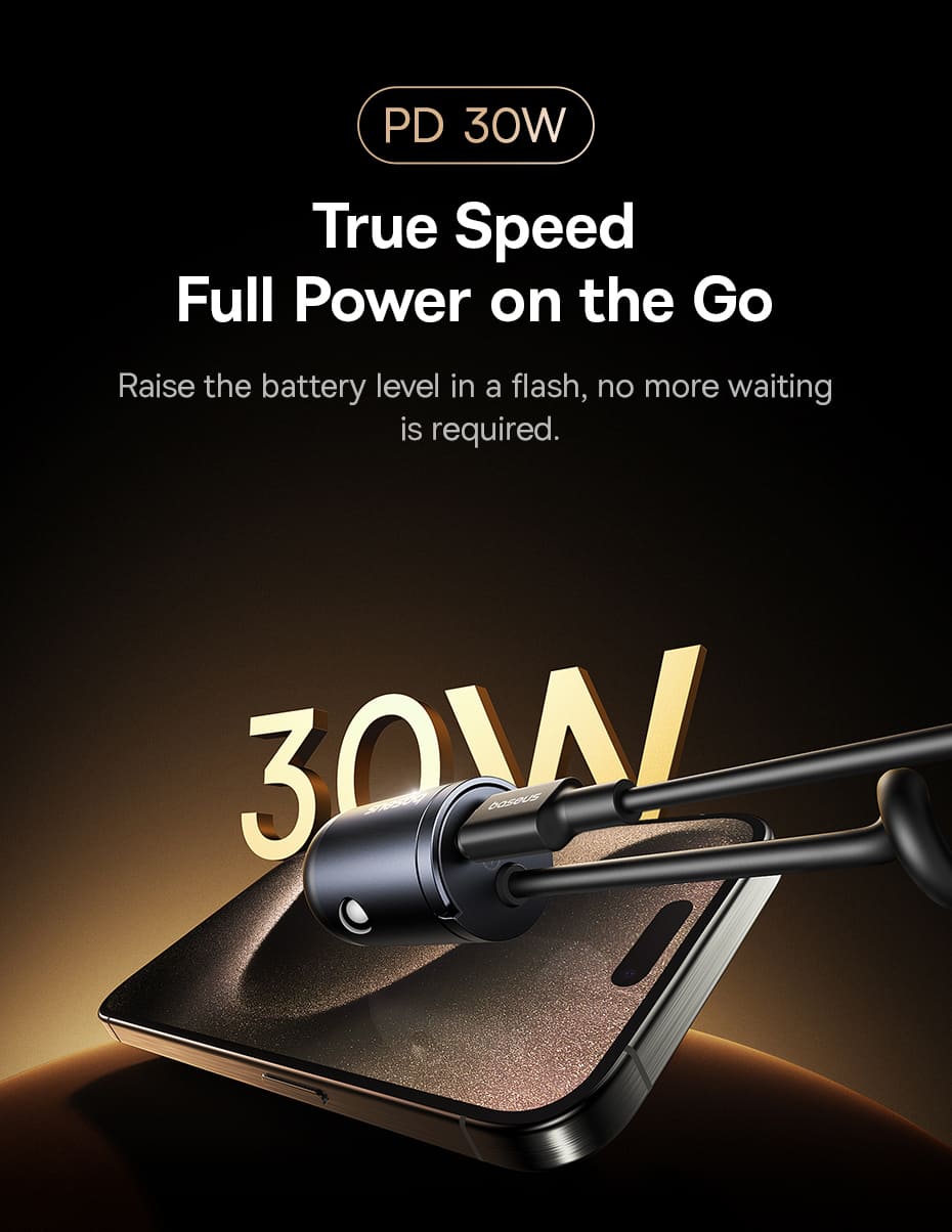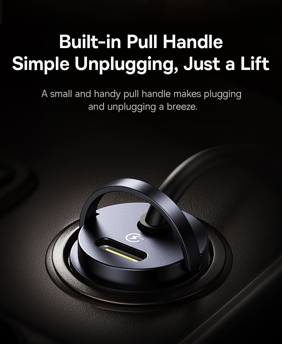 💎 THIẾT KẾ "TÀNG HÌNH" SIÊU NHỎ GỌN: Nhỏ hơn cả một chiếc chìa khóa xe, tẩu sạc Baseus vừa vặn hoàn hảo và nằm phẳng với bề mặt taplo, tạo nên một tổng thể liền mạch, sang trọng. Tẩu còn được trang bị một tay cầm nhỏ có thể kéo ra, giúp bạn tháo lắp một cách dễ dàng.